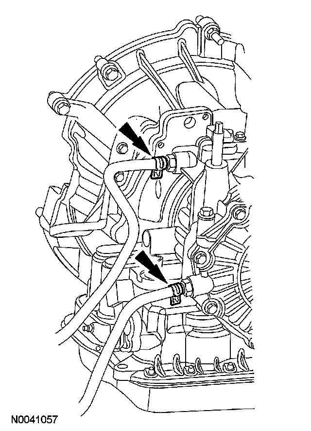 NOTE: If the transaxle was overhauled, or if installing a new transaxle and the transmission fluid cooler has not been flushed, flush the fluid cooler at this time. For additional information, refer to Transmission Fluid Cooler - Backflushing and Cleaning.