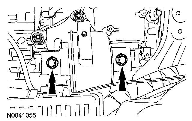 35. Raise the transaxle and install the 2 transaxle insulator bolts.