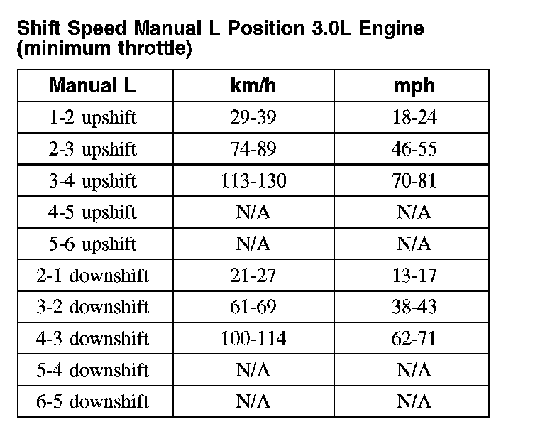Shift Speed Manual L Position 3.0L Engine (Minimum Throttle):