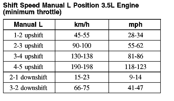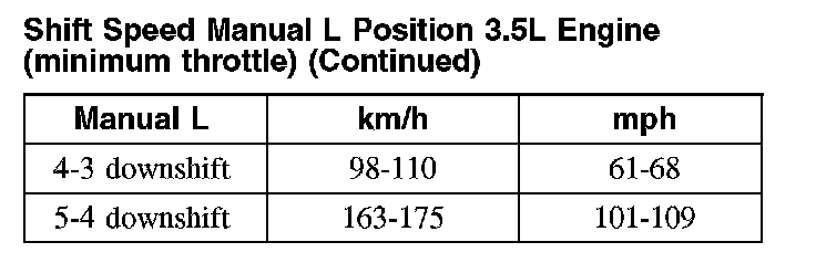 Shift Speed Manual L Position 3.5L Engine (Minimum Throttle):