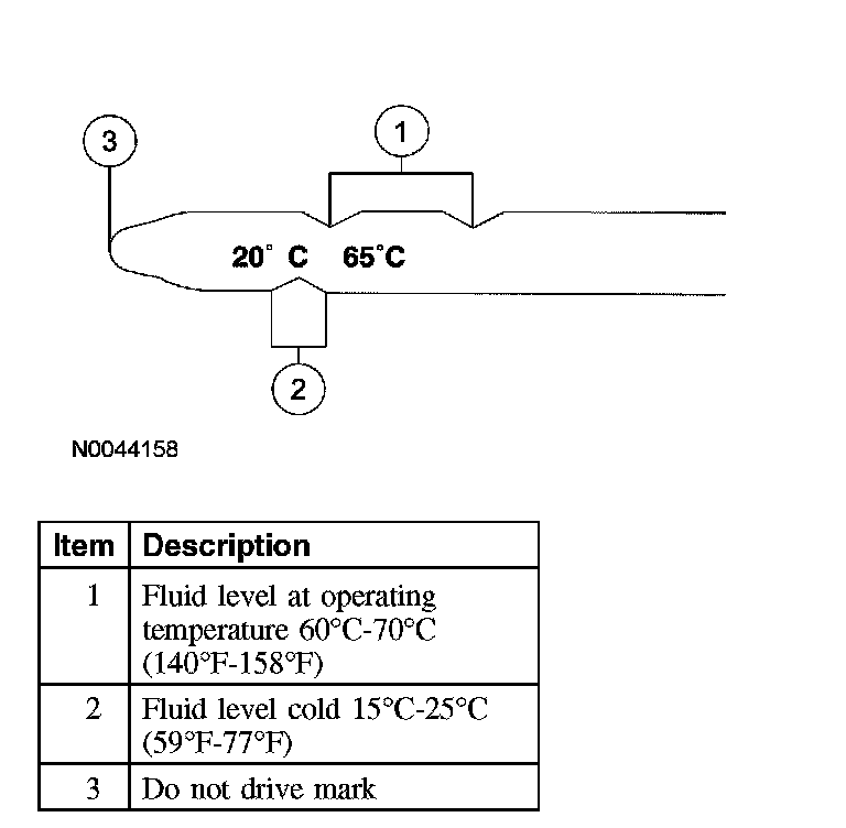 CAUTION: The vehicle should not be driven if the fluid level indicator shows the fluid below the DO NOT DRIVE mark or internal failure could result.