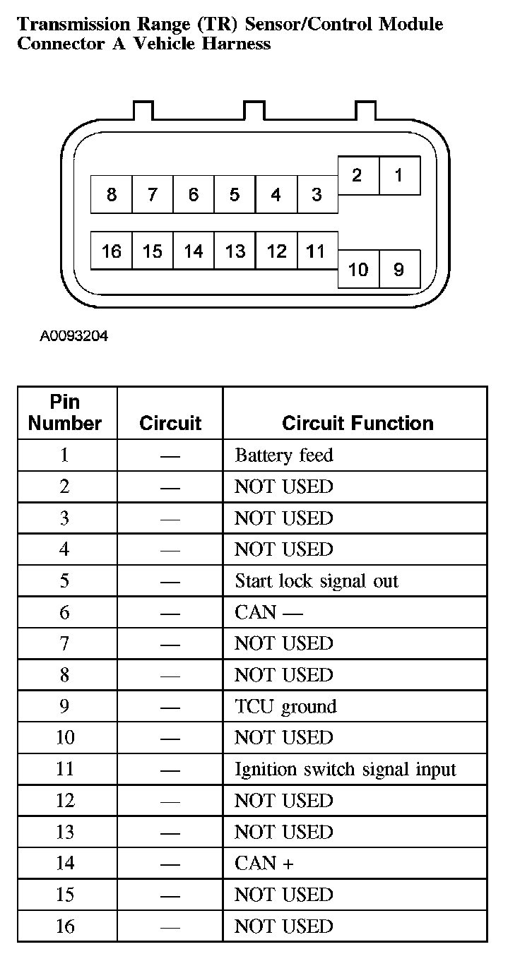 Transmission Range (TR) Sensor/control Module Connector A Vehicle Harness: