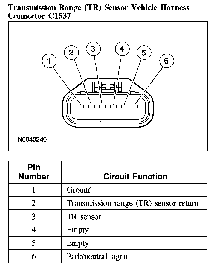 Transmission Range (TR) Sensor Vehicle Harness Connector C1537