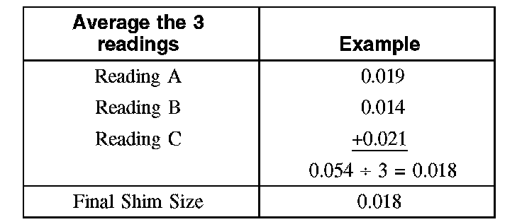 - Take and record 3 readings within 0.10 mm (0.004 inch) of each other. Use the formula below to select the correct shim size.
