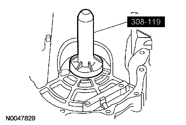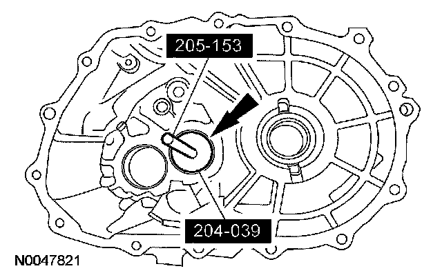 29. Using the special tools, install the differential bearing cup into the flywheel housing.