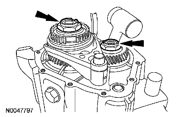 47. Shift the synchronizers into the 2nd and 4th gear positions.