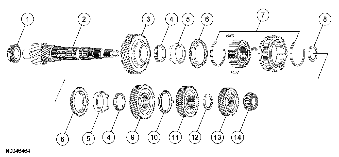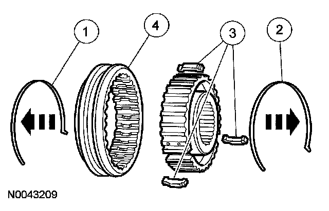 ^ Inspect all synchronizer components for wear or damage. Install a new synchronizer as necessary.