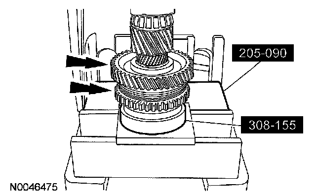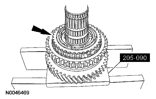 Using the special tools, press on the 1st gear, the synchronizer blocking ring and reverse gear.
