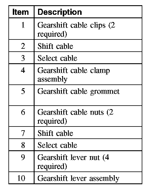 9. CAUTION: Carefully disconnect the cable from the shift lever assembly. Do not damage the shift cable retainers.