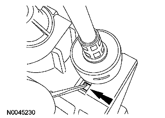 4. CAUTION: Carefully pry the retainer on the shift cable. Do not damage the shift cable retainers.