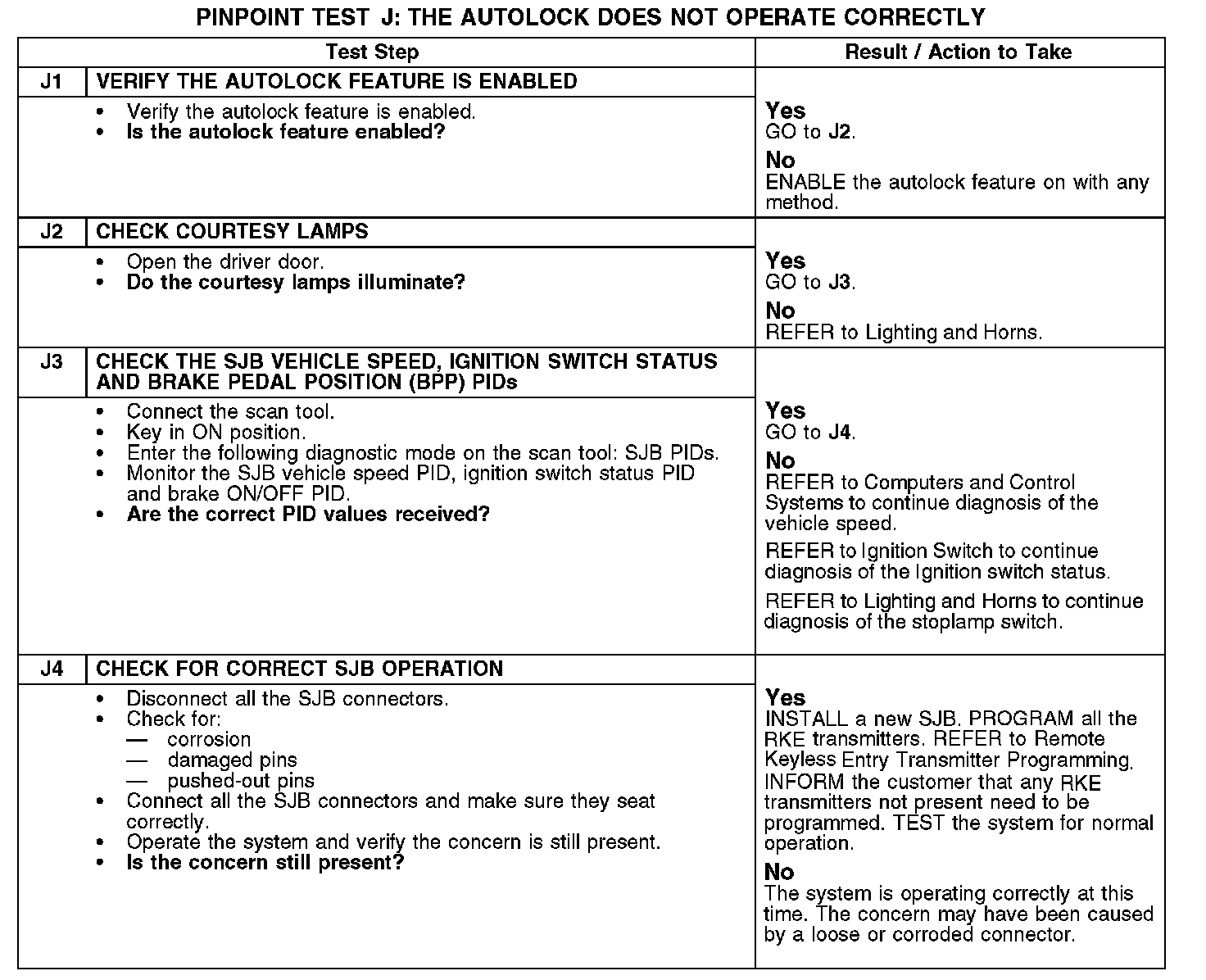 PINPOINT TEST J: THE AUTOLOCK DOES NOT OPERATE CORRECTLYJ1-J4: