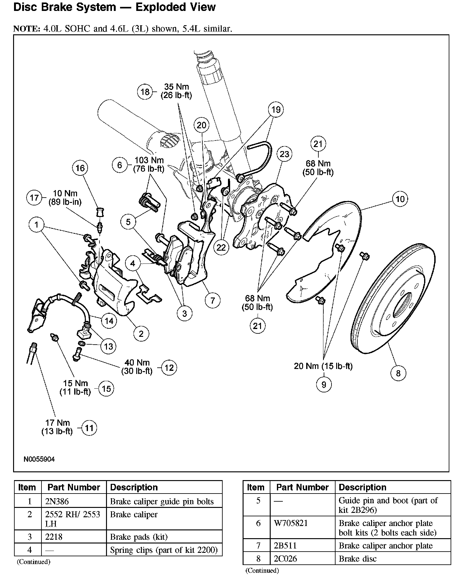 Disc Brake System - Exploded View: