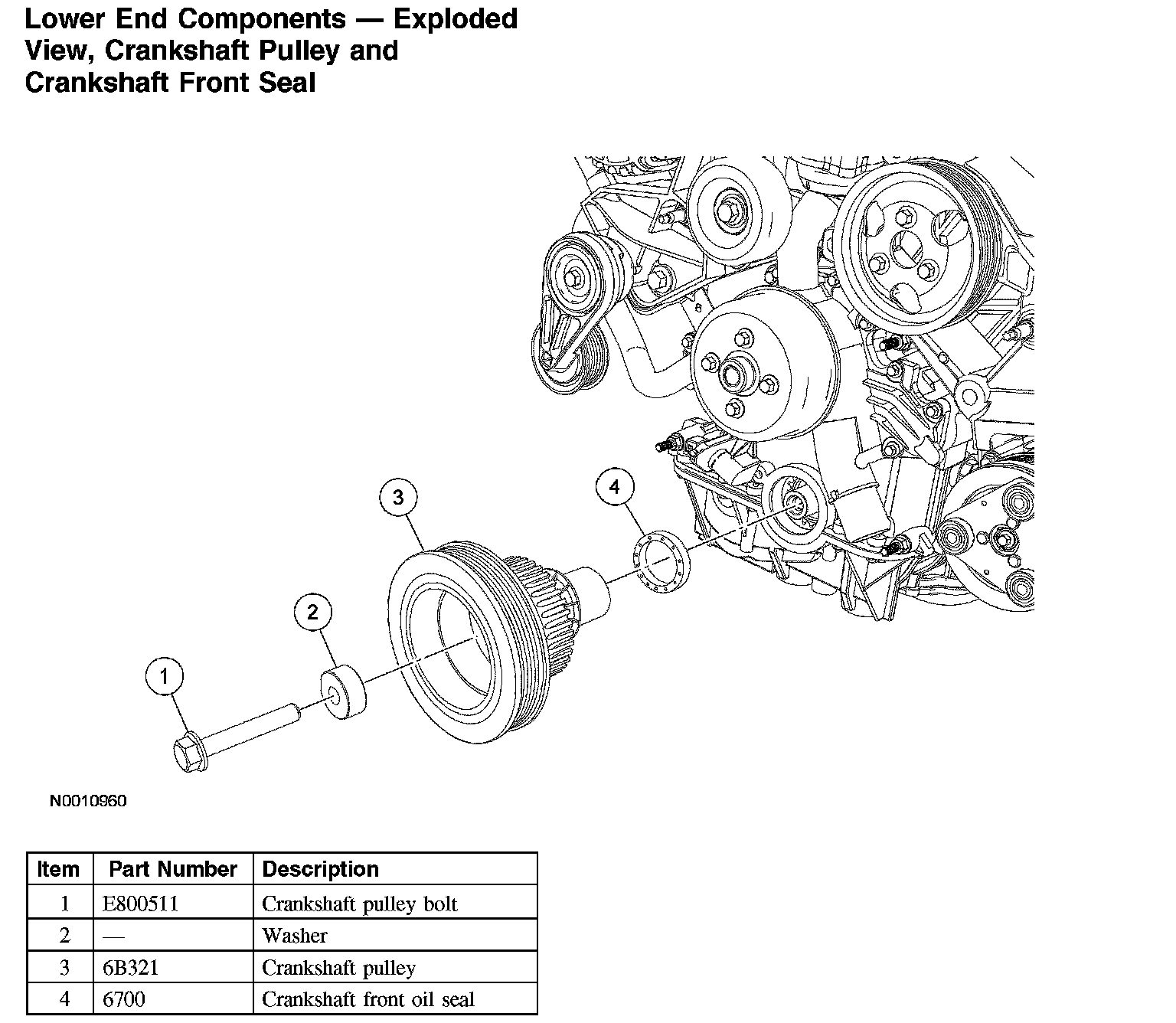 Lower End Components - Exploded View, Crankshaft Pulley and Crankshaft Front Seal: