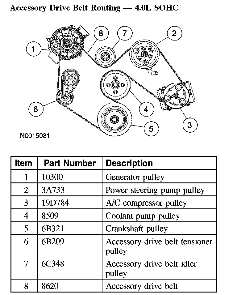 Accessory Drive Belt Routing - 4.0L SOHC: