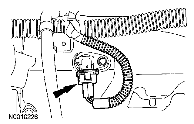 7. Disconnect the vacuum tube and the fuel rail pressure and temperature sensor electrical connector.