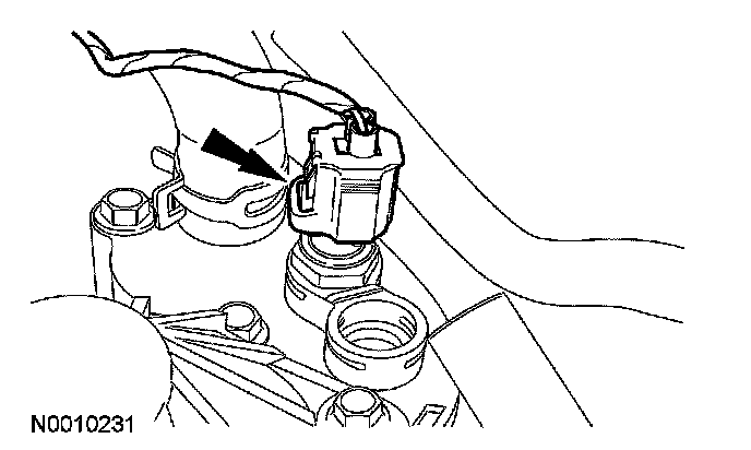 12. Disconnect the knock sensor (KS) electrical connector and detach the wiring retainer.