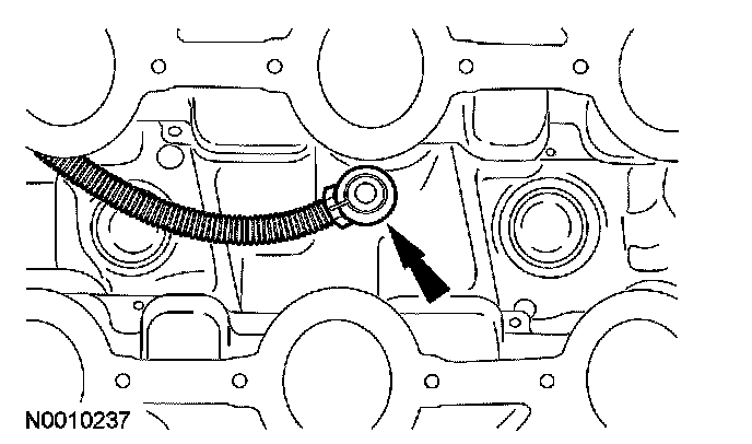 CAUTION: During engine repair procedures, cleanliness is extremely important. Any foreign material, including any material created while cleaning gasket surfaces that enters the oil passages, coolant passages or the oil pan, can cause engine failure.