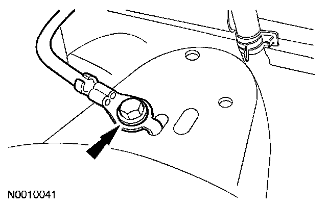 4. Attach the ground cable to the RH strut tower and install the bolt.