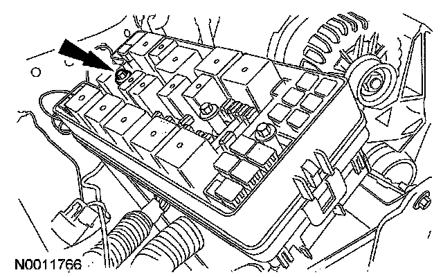 7. Attach the B+ terminal to the power distribution box and install the bolt.