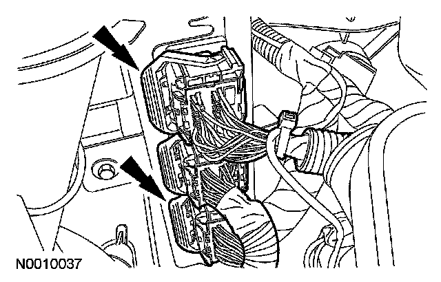 11. Connect the upper and lower powertrain control module (PCM) electrical connectors.