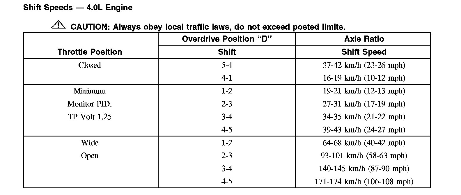 Shift Speeds - 4.0L Engine
