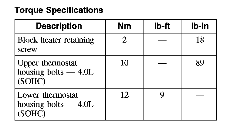 Torque Specifications: