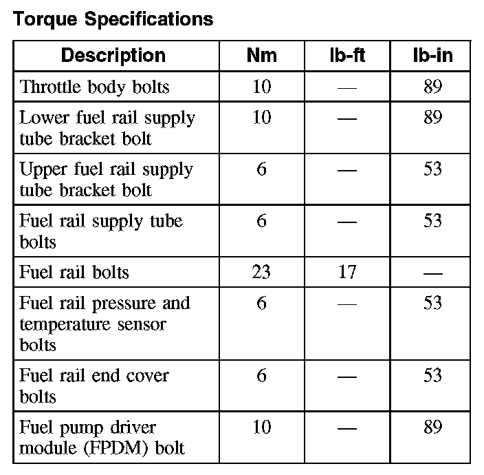 Torque Specifications: