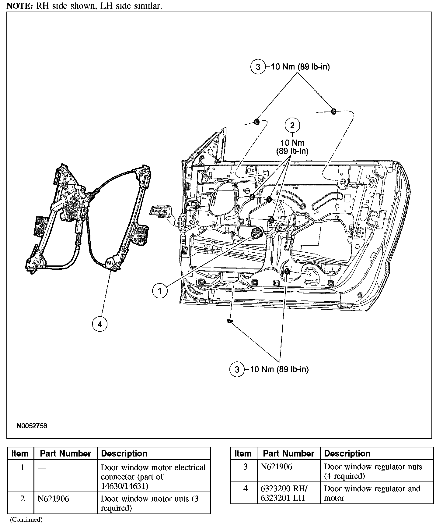 WINDOW REGULATOR AND MOTOR - FRONT DOORRemoval and Installation