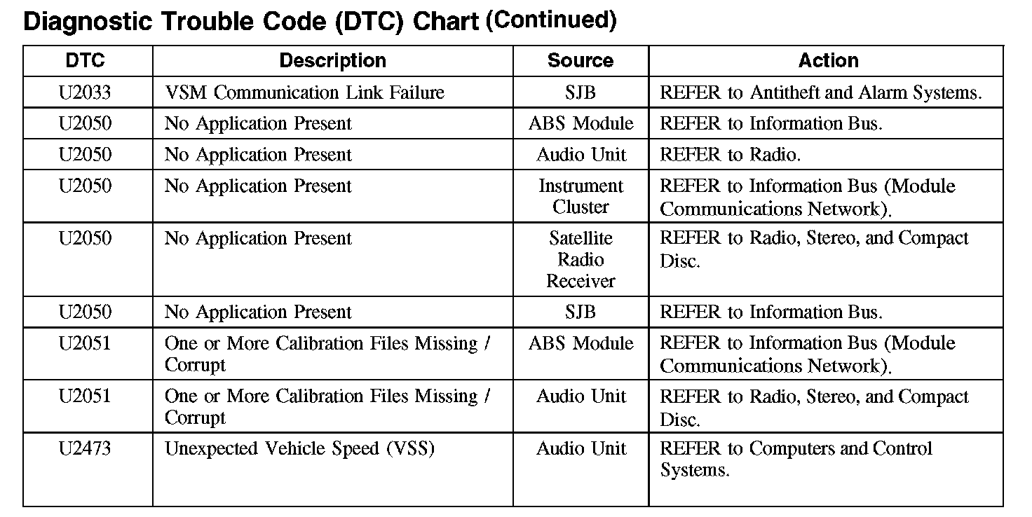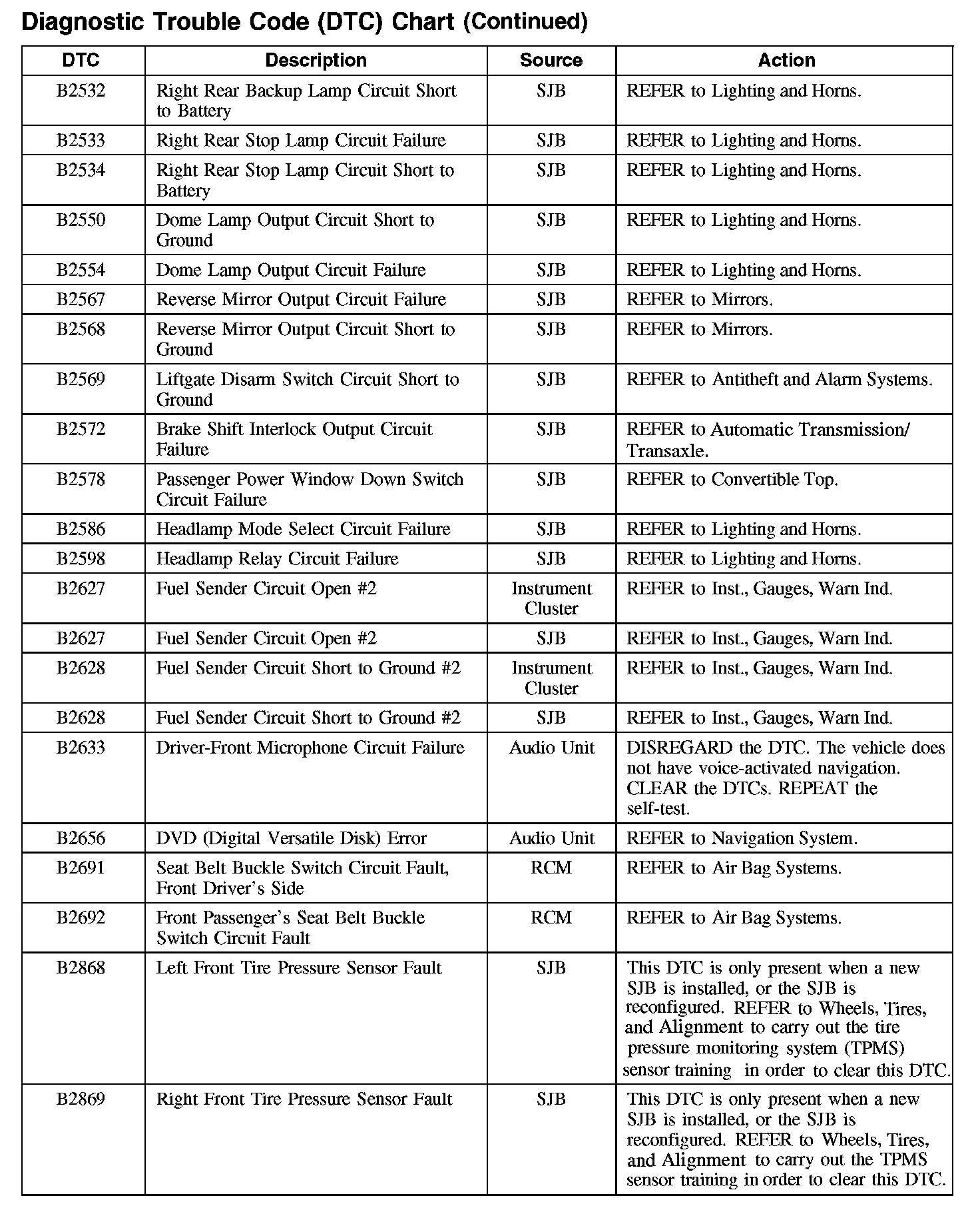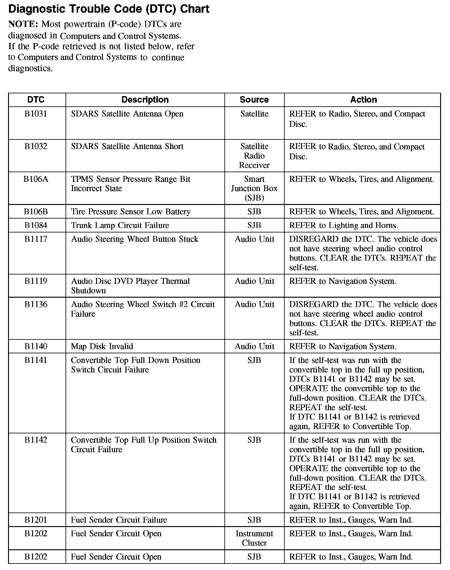 DIAGNOSTIC TROUBLE CODE (DTC) CHART