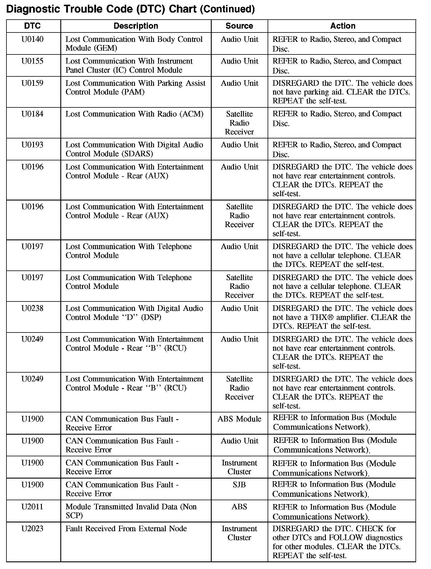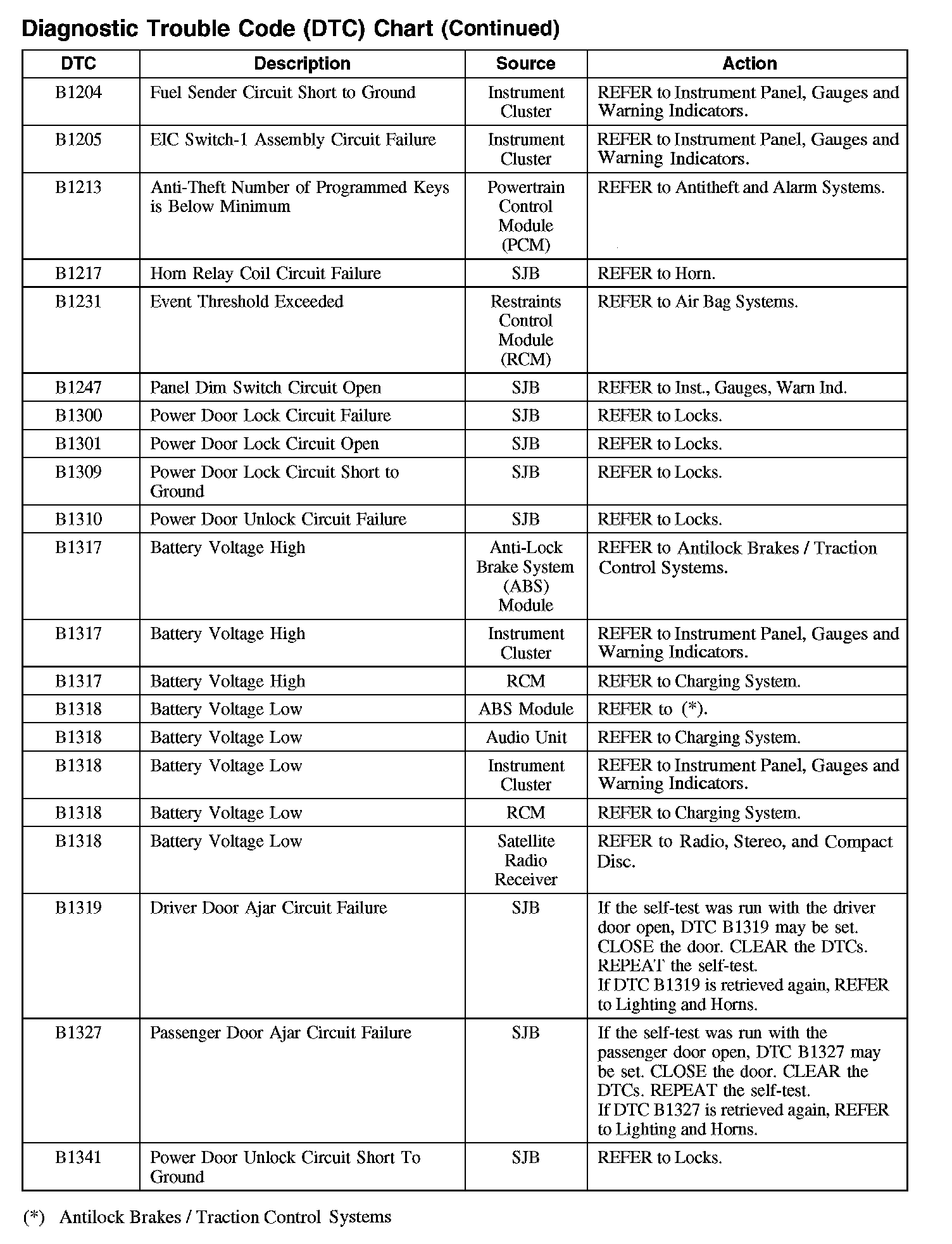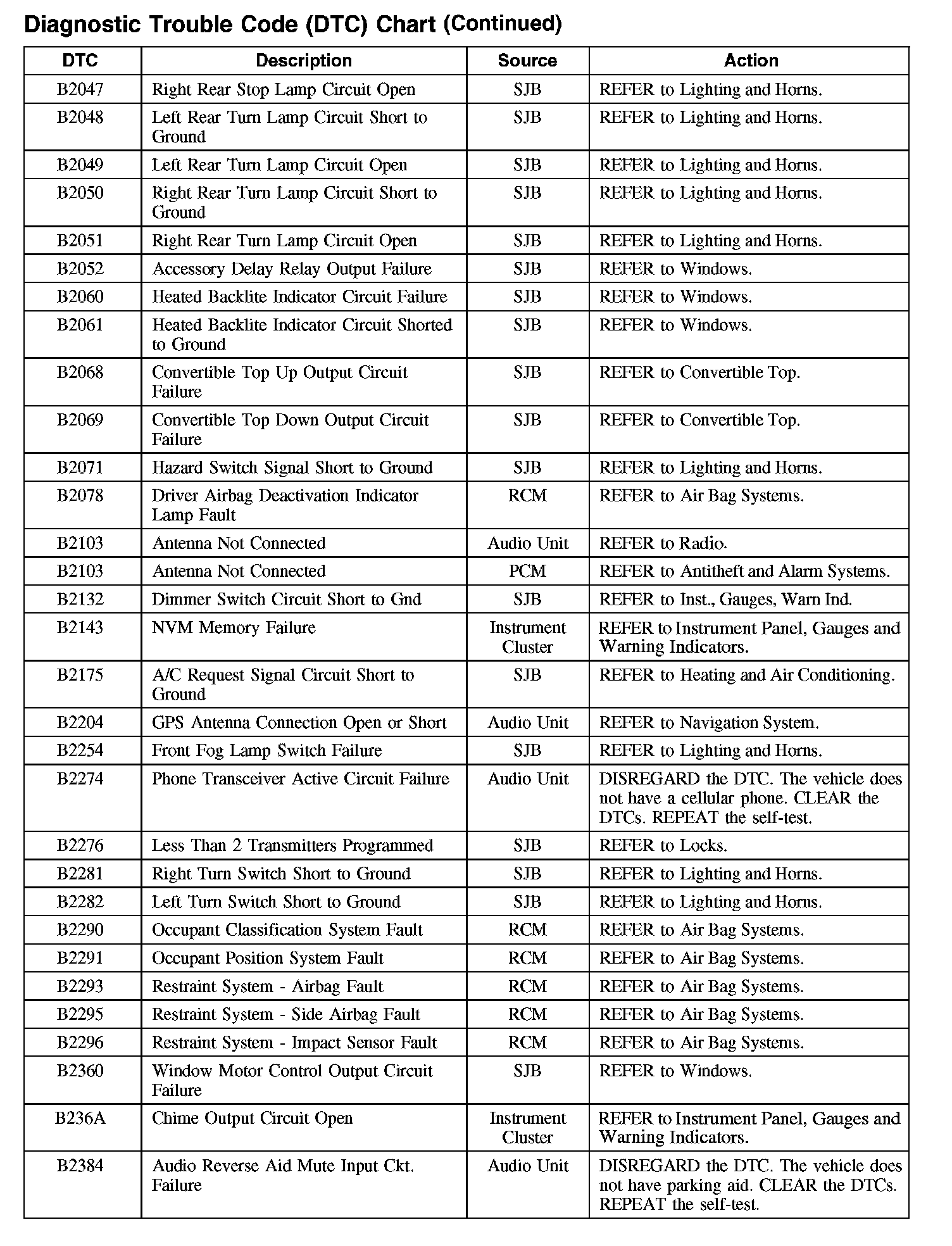 DIAGNOSTIC TROUBLE CODE (DTC) CHART