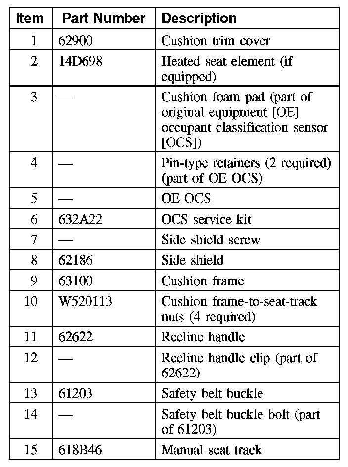 Passenger Manual Front Seat Cushion (Part 1):