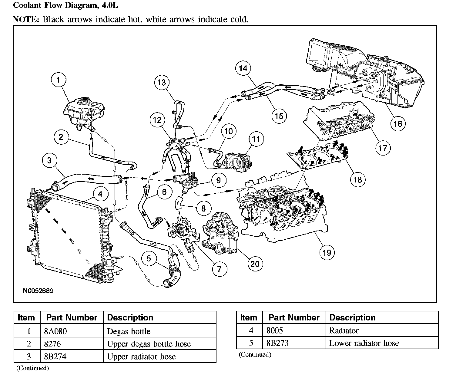 The 4.0L (SOHC) cooling system components include the: