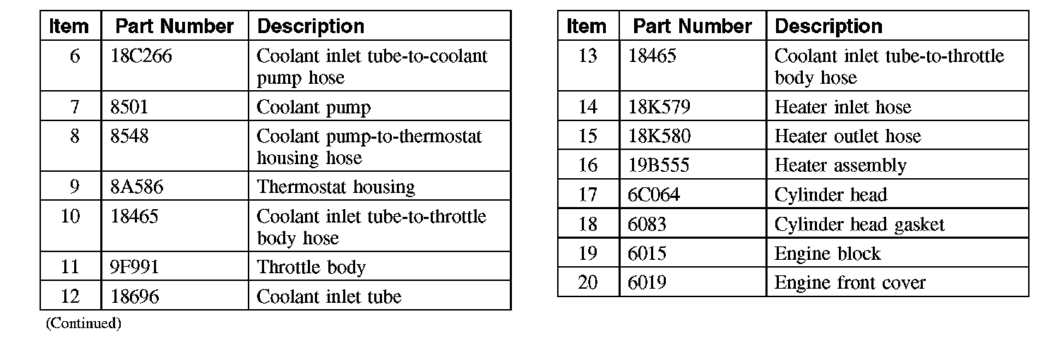 The 4.6L (3V) and 5.4L (4V) cooling system components include the: