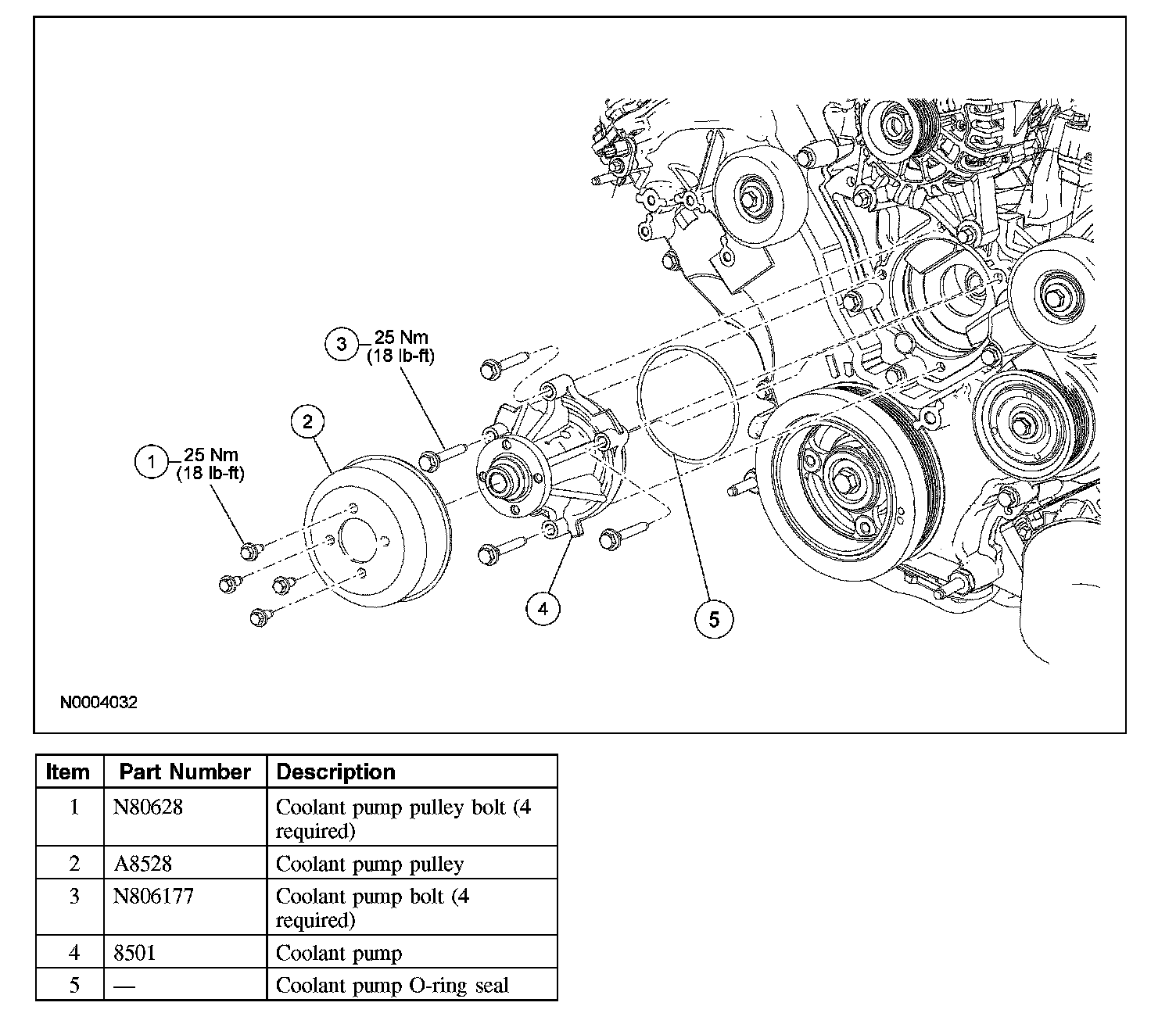 - Install a new coolant pump O-ring seal and lubricate with clean engine coolant.