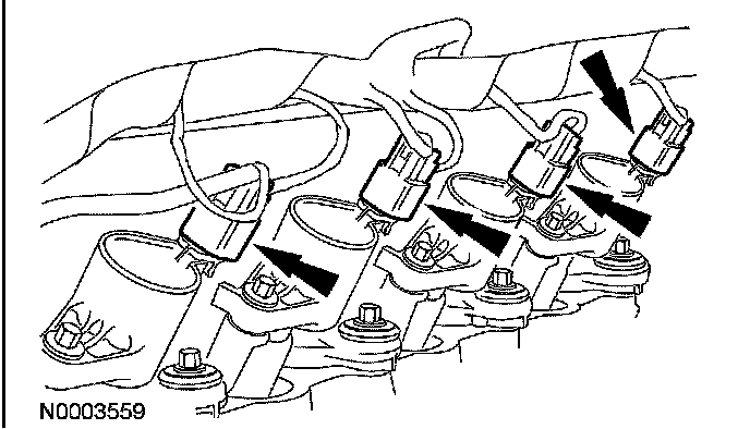 Disconnect the 4 RH and 4 LH ignition coil electrical connectors.