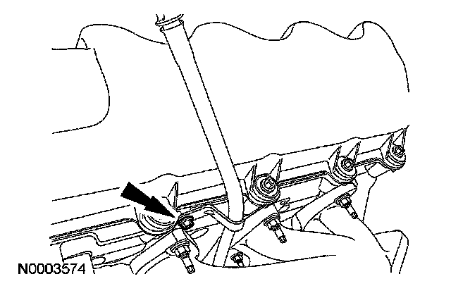 - Detach the engine wiring harness retainer from the stud bolt.