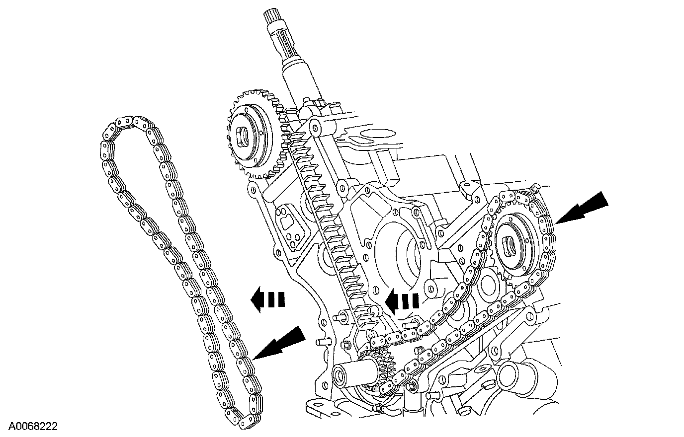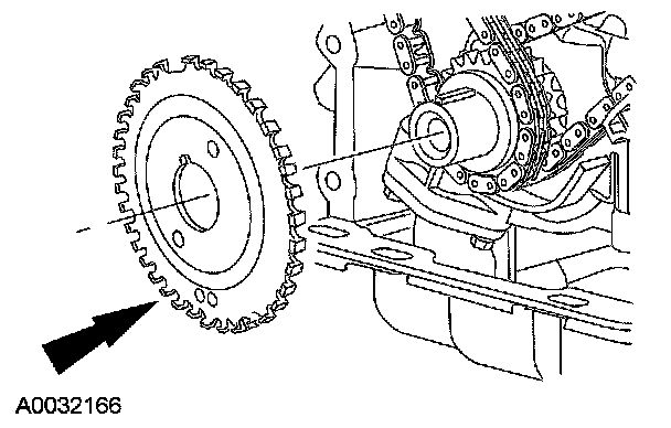 - Remove the LH timing chain and crankshaft sprocket.