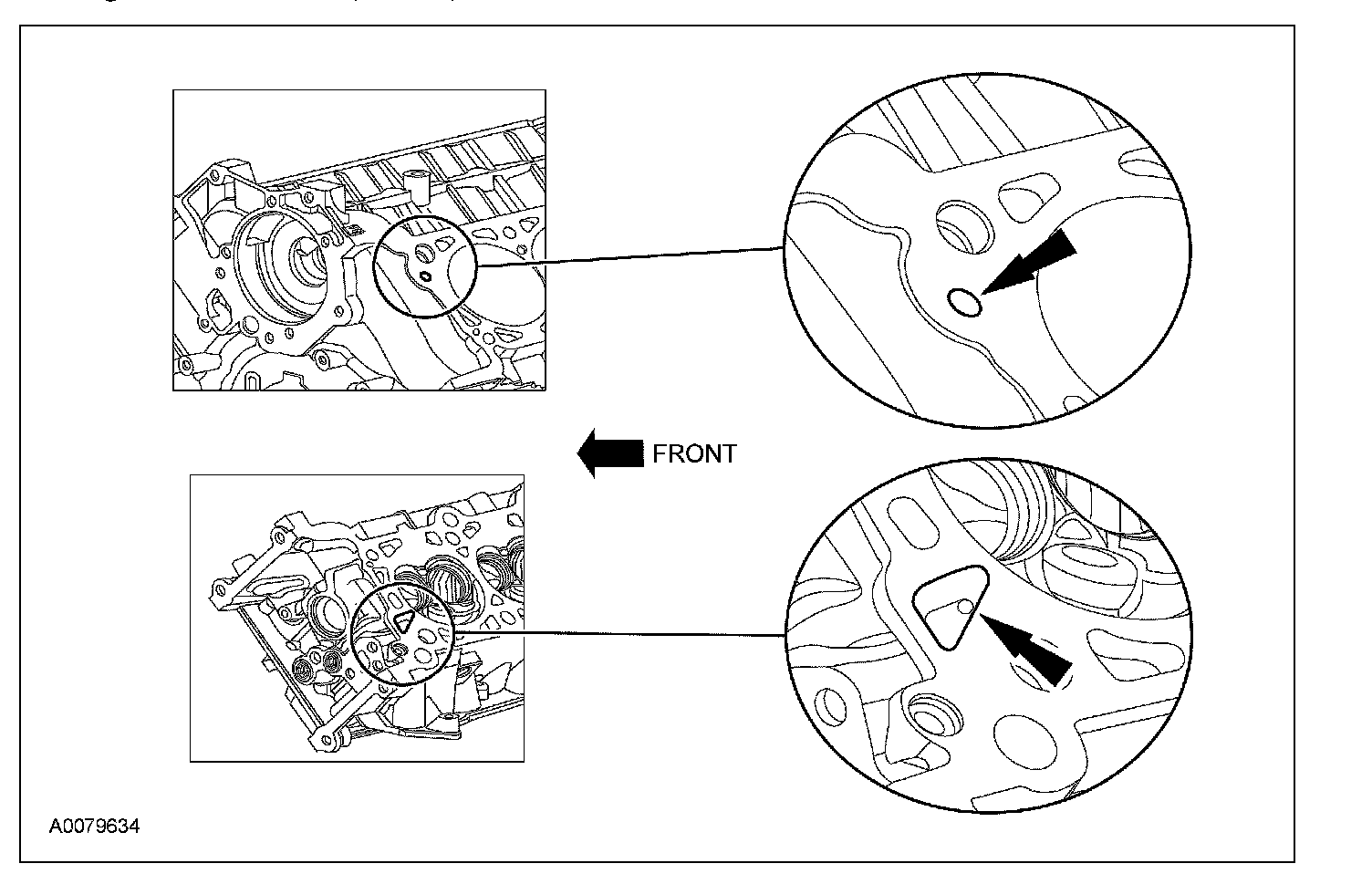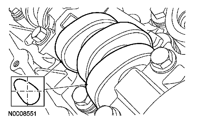 - The camshaft front thrust bearing cap contains an oil metering groove. Make sure the groove is free of foreign material.