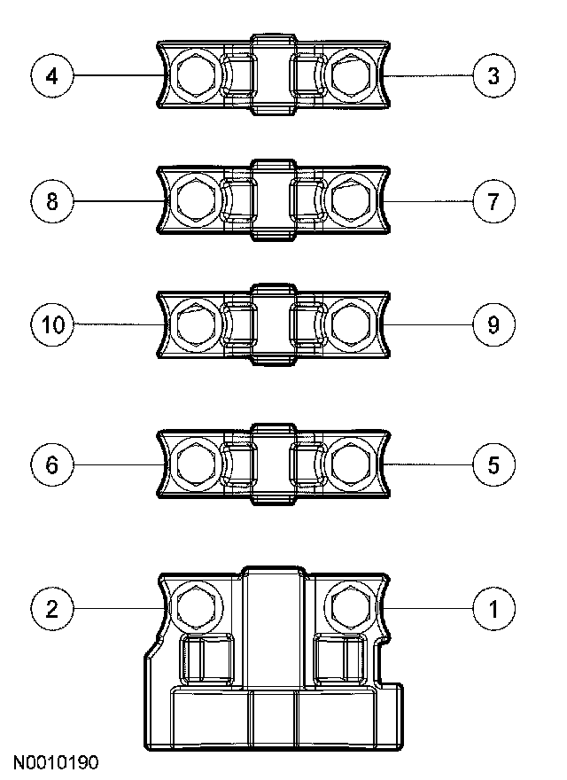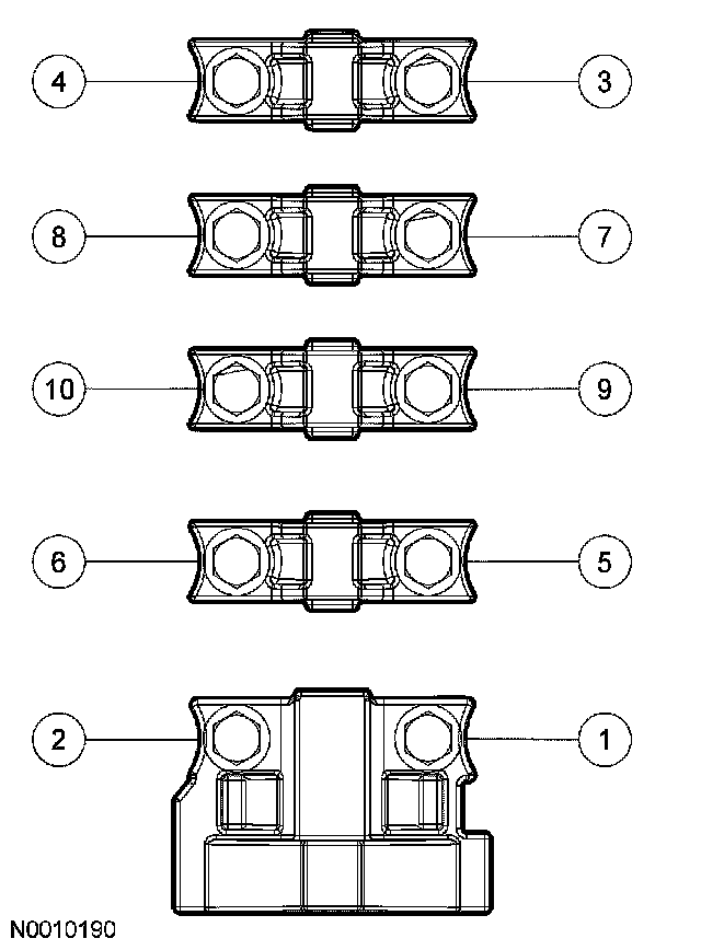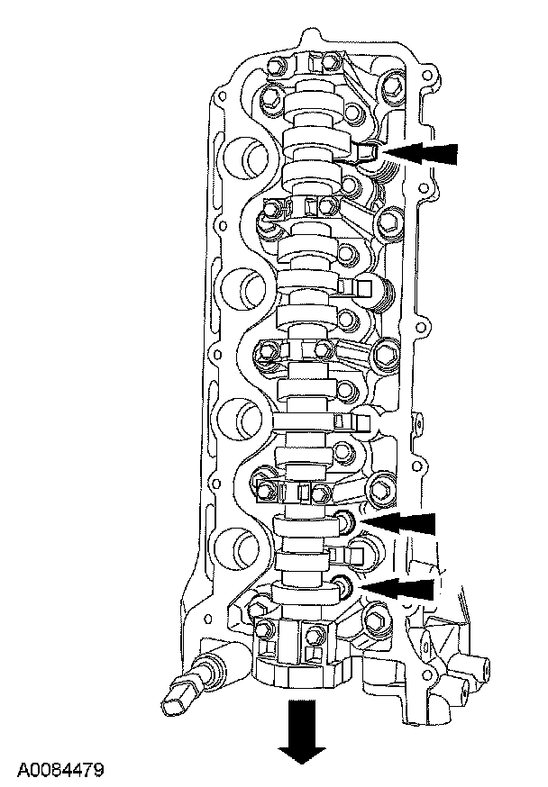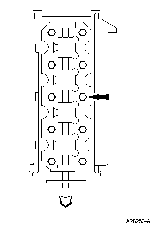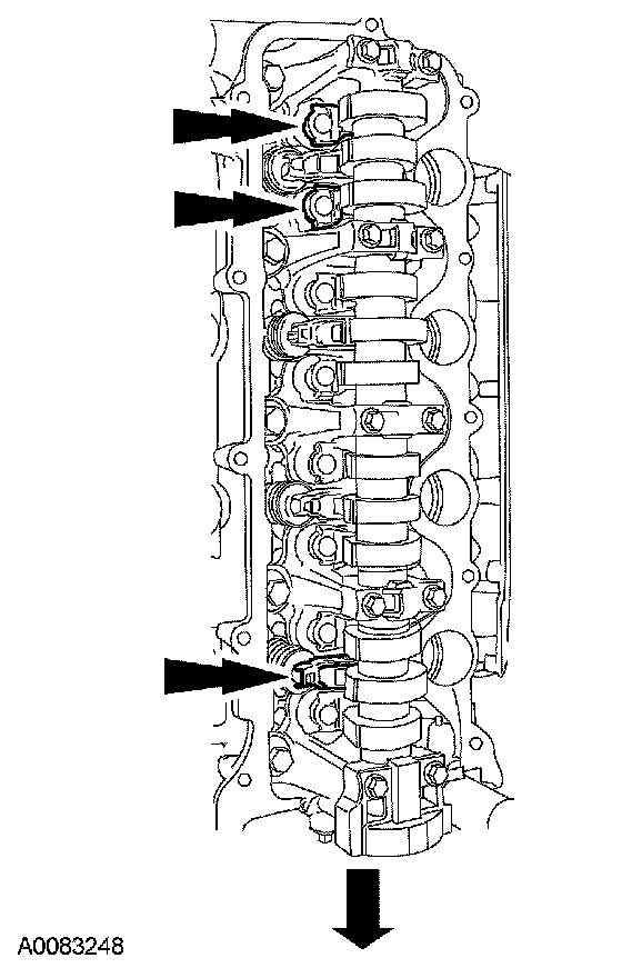 NOTE: The camshaft bearing caps must be installed in their original locations. Record camshaft bearing cap locations.