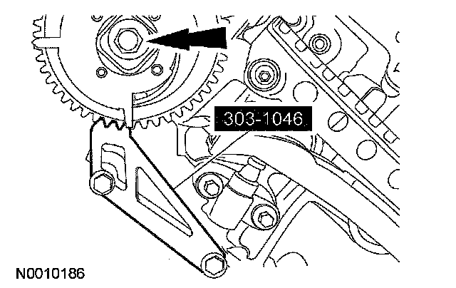 45. CAUTION: Damage to the camshaft phaser sprocket assembly will occur if mishandled or used as a lifting or leveraging device.