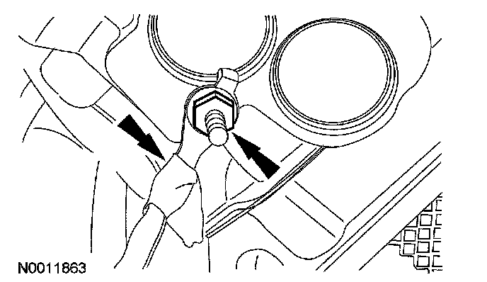 - Discard the camshaft phaser sprocket bolt.