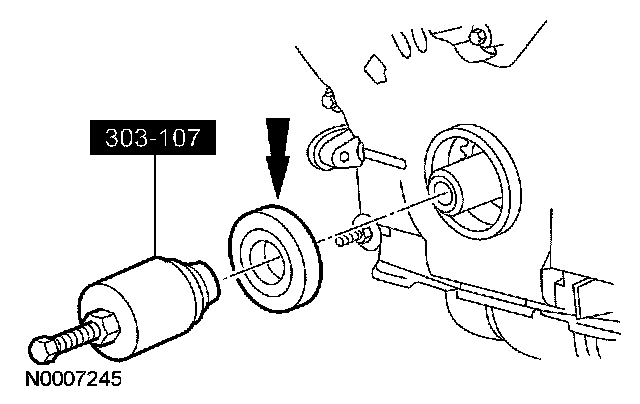 41. Remove and discard the crankshaft pulley bolt.Using the special tool, remove the crankshaft pulley.