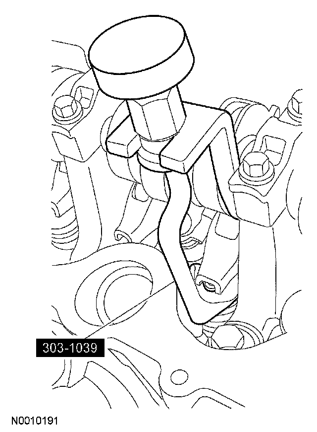58. CAUTION: Damage to the camshaft phaser sprocket assembly will occur if mishandled or used as a lifting or leveraging device.