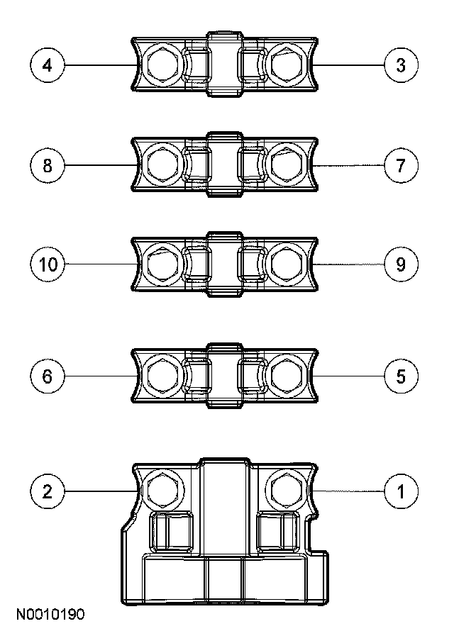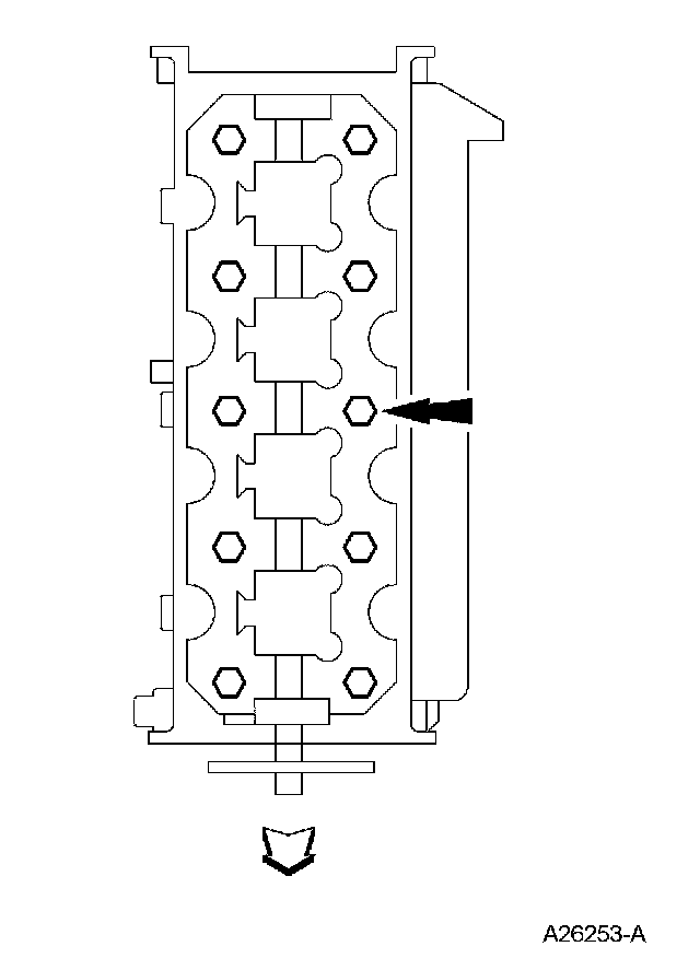 NOTE: The camshaft bearing caps must be installed in their original locations. Record camshaft bearing cap locations.