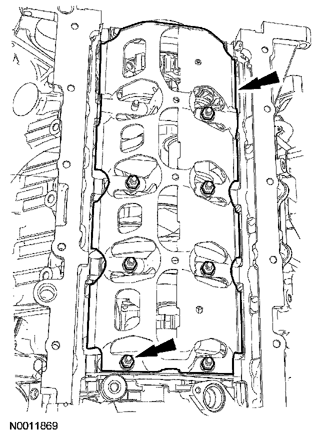 Remove the RH cylinder head front camshaft bearing cap, then the remaining bearing caps.