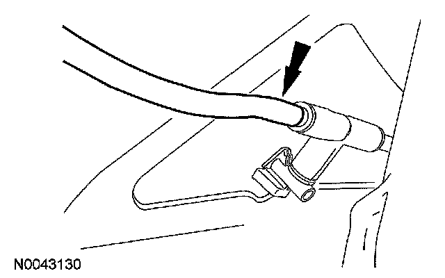 5. Position the hood insulation aside and disconnect the windshield washer hose.