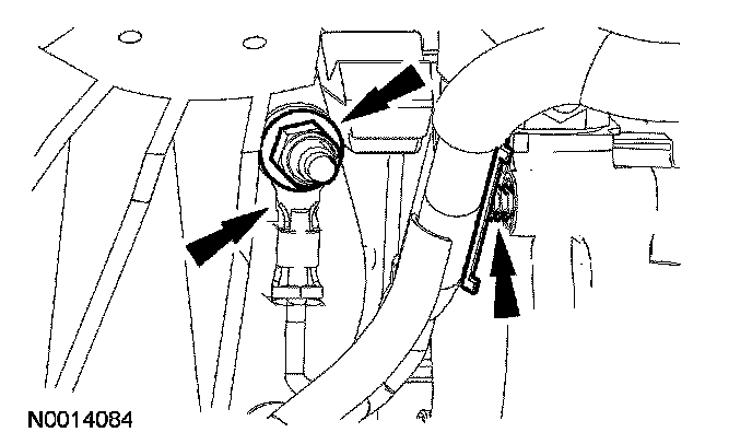 14. Disconnect the coolant hose from the oil filter adapter.