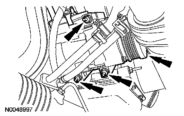 24. Remove the nut and position aside the transmission cooler tube bracket.