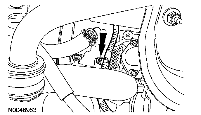 20. Remove the wiring harness retainer from the power steering stud bolt.