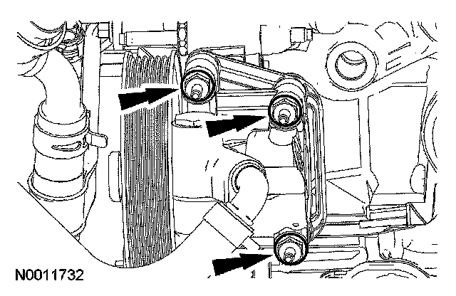 21. Remove the 3 stud bolts and position the power steering pump aside.